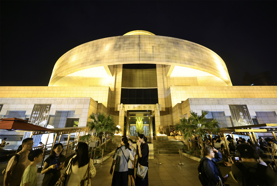 今天晚上,上海博物馆将呈现众神NPC巡游、埃及鼓表演、埃及舞蹈、单人艺术造型杂技表演、音乐剧《阿依达》经典唱段、近景魔术表演等节目,以飨参观者。