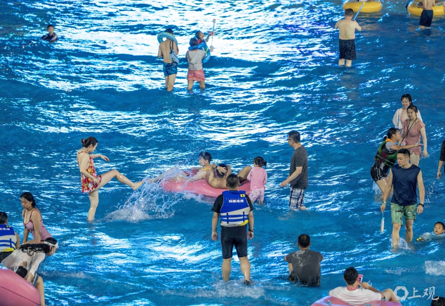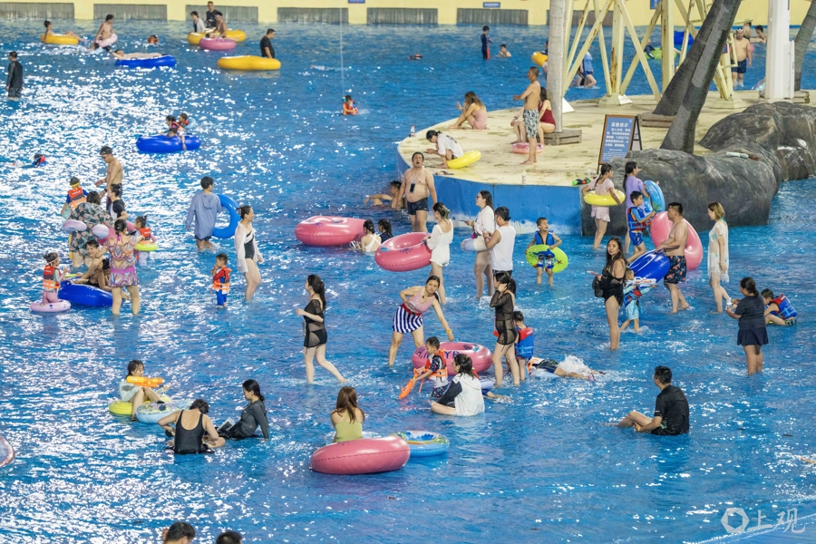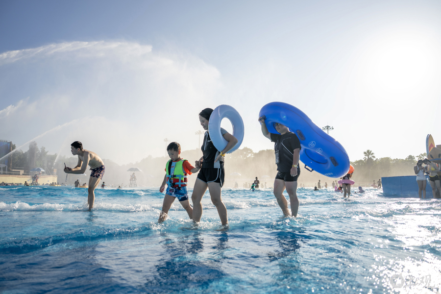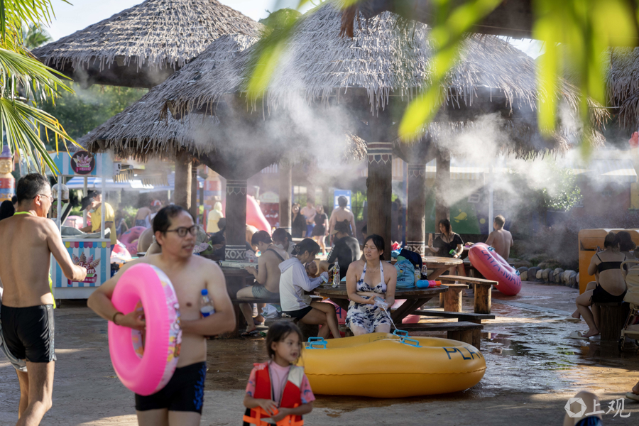 在玛雅水公园内,各类泰国风情的亲水娱乐活动为市民游客带来夏日清凉。