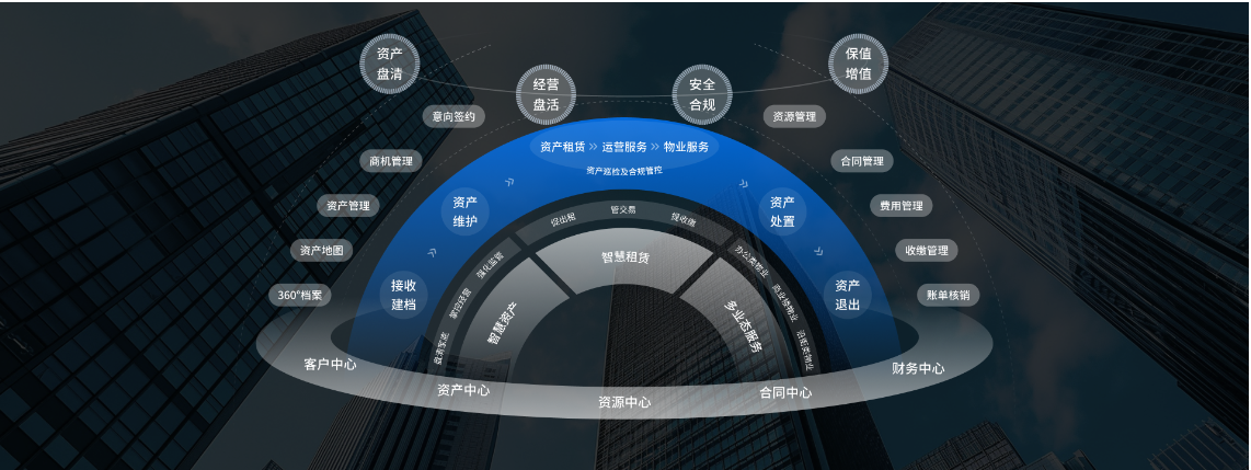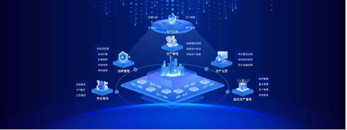 1.资管云 - 智能中枢: 实时掌控资产全景,智能预测价值潜力,精准预警运营风险,赋能科学投资决策。