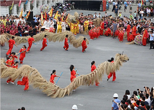 舞草龙的习俗,有着千年的传说。相传唐朝仪凤年间,叶榭境内遭遇了一场特大旱灾。八仙中的韩湘子,途经叶榭,见乡亲父老跪地长拜、焚香点烛祈求苍天下雨,遂逗留云间,吹起神箫,召来东海青龙降了一场大雨。为报答韩湘子“吹箫召龙”的恩惠,人们便扎起草龙,翩翩起舞。在历史的长河中,舞草龙的仪式,往往与祭祀求雨,庆祝丰收相关。条条草龙见证着江南稻作文化的兴衰流变。