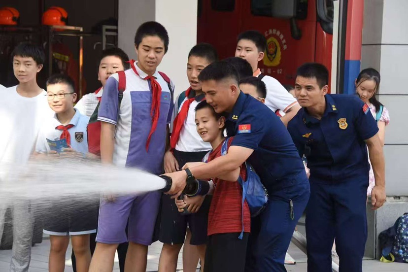 最后,顾耀耀火灾调查工作室让大家近距离接触消防世界,同学们参观了火灾调查工作室、消防车库和消防装备,体验了VR现场火灾调查,观看消防员挂钩梯、使用水枪等科目展示,尝试穿上消防服装等,深刻体会到消防员工作的艰辛与担当。