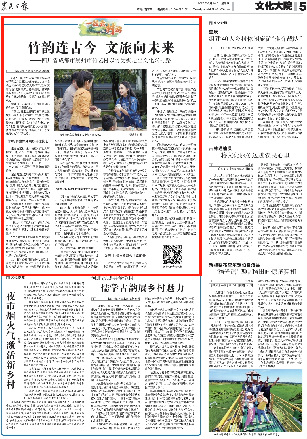 日前,记者走进道明竹编的核心区成都市崇州市道明镇竹艺村,探寻这份古老技艺何以焕发生机,感受这个被竹文化浸润的川西村落,如何在近年来以“破竹”之势,将传统竹编技艺、文化创意与乡村旅游加以融合,进而走出了一条文化兴村的“竹”梦之路。