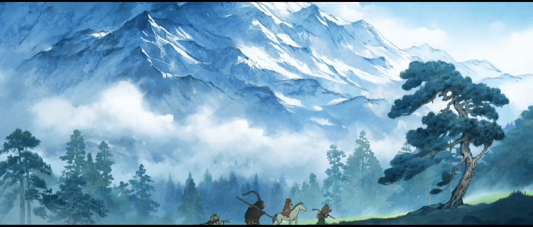 《浪浪山小妖怪》营造的东方写意,不止于背景里流动的水墨意韵。细心观众会发现,妖王洞府的屏风上,一幅青绿山水若隐若现——这正是隋代展子虔的《游春图》,现存最早的独立性卷轴山水画,这幅创作于1400多年前的作品结束了魏晋时期“人大于山,水不容泛”的稚拙阶段,首次实现“远近山水,咫尺千里”的空间效果。画中以青绿金碧着色,山脚用泥金勾勒轮廓,形成金碧辉映的装饰效果,开创了青绿山水画的先河。电影中,这一艺术史化作全景中的文化符号,暗示角色自诩的风雅品味,也道出影片的美学追求。