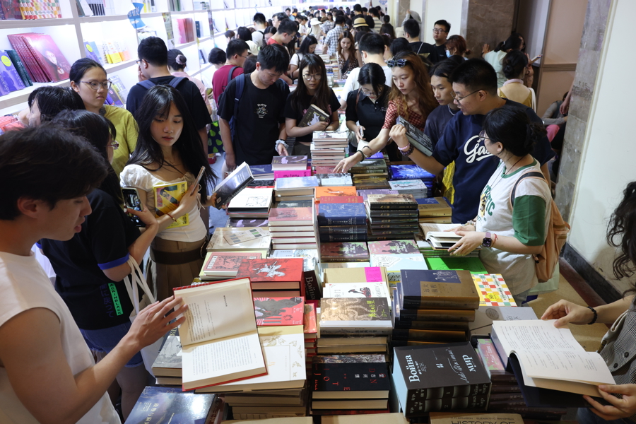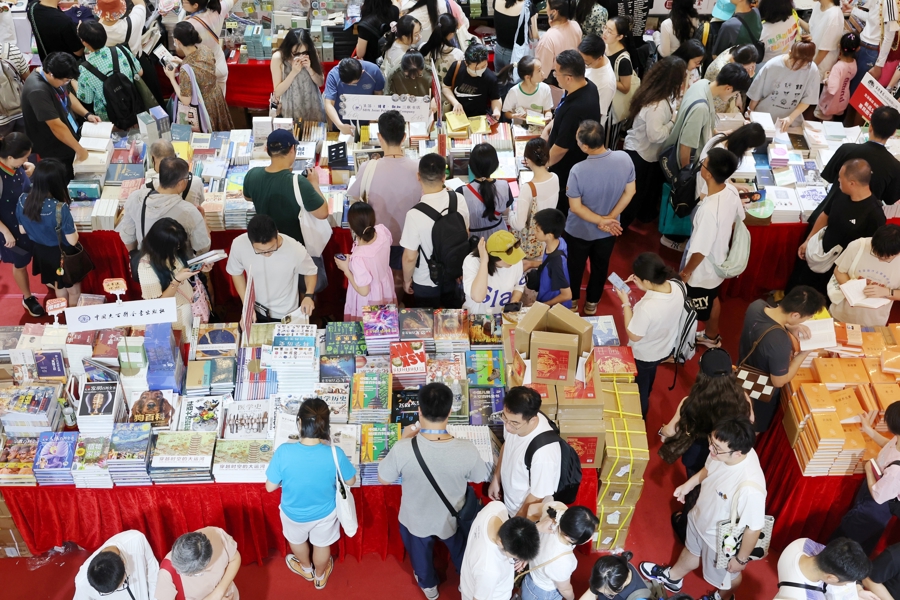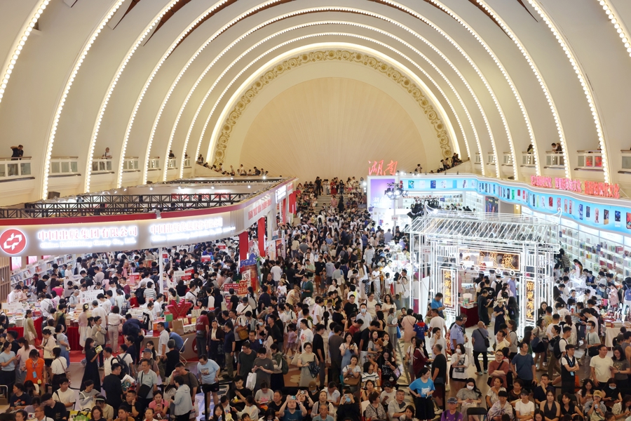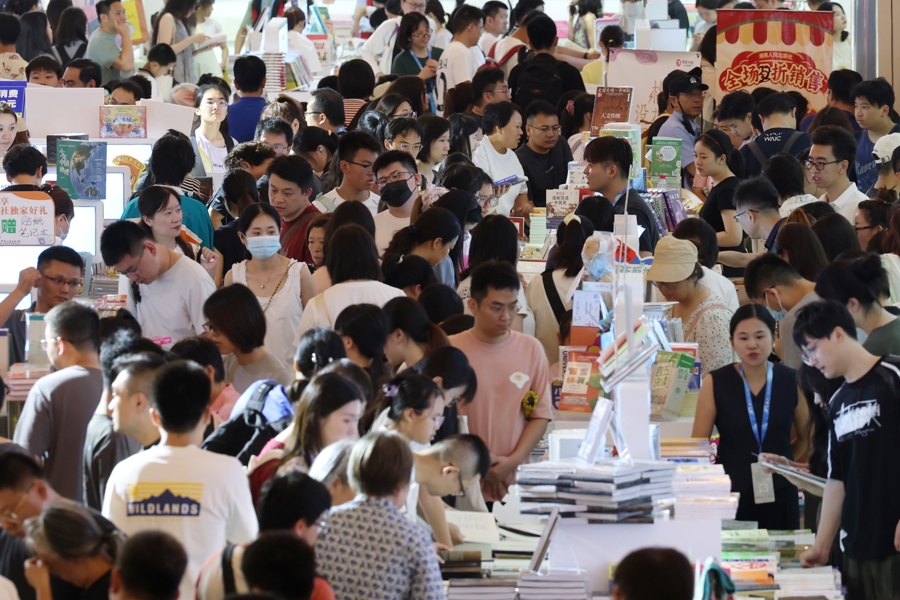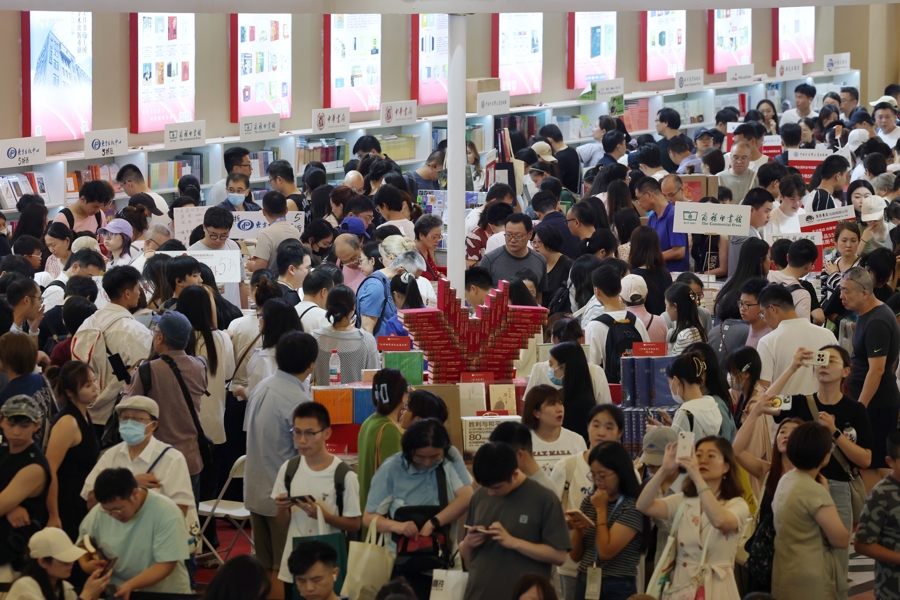 8月16日,上海书展迎来首个周末大客流,现场读者摩肩接踵,畅享书香假期。