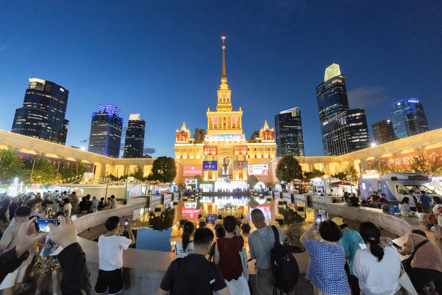 上海书展首次推出的户外“阅界夜市”吸引读者赶夜场逛书展。