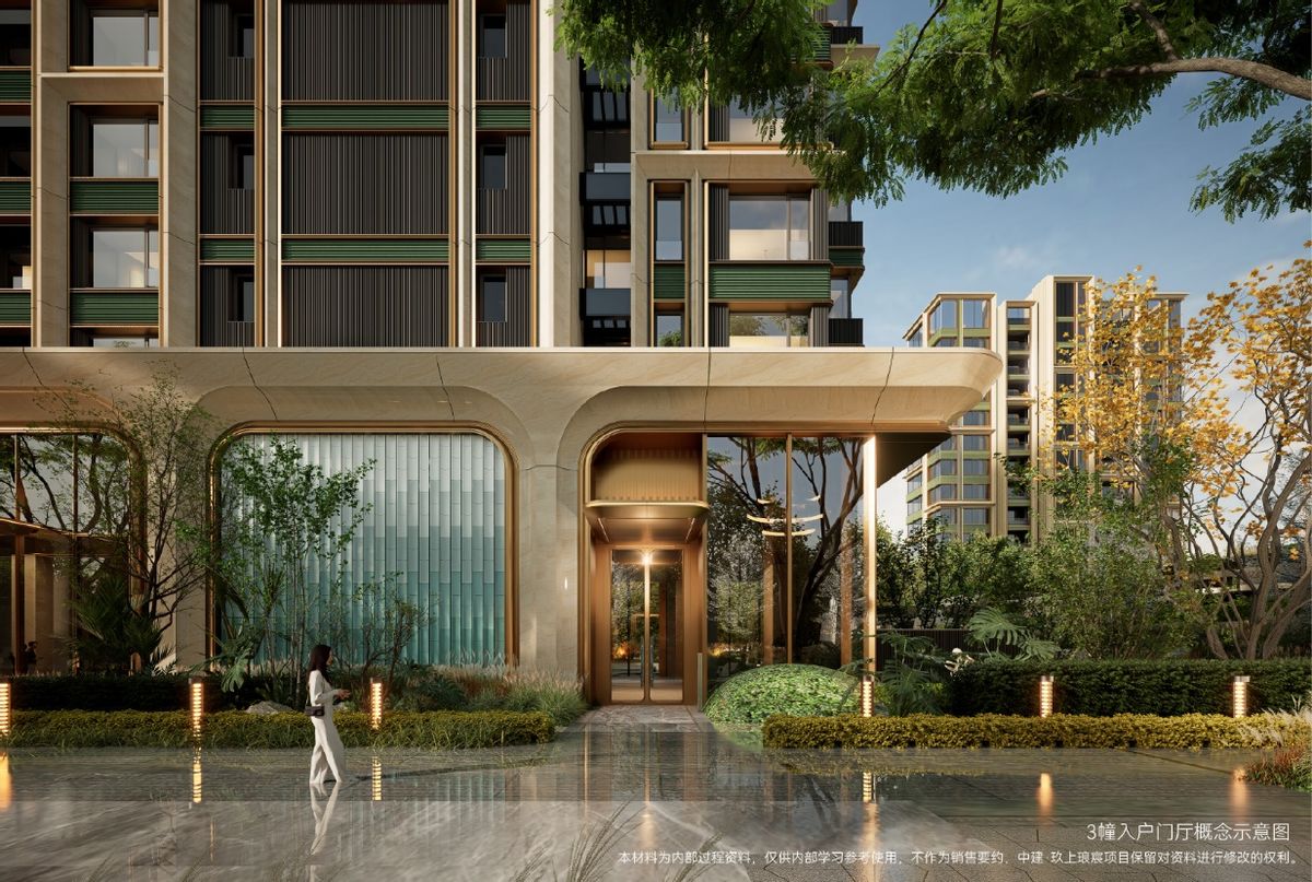 “远东第一豪宅”吴同文故居,其建筑立面采用绿色釉面砖,因此以“绿房子”之名流芳世界。而这份豪宅精髓,如今在玖上琅宸得以传承,以青绿釉色雕琢的「金镶玉制」陶板立面,每一块陶板,皆出自景德镇匠人手工烧制,损耗率超40%,一块一造,每一丝纹理独一无二,成就无法复刻的立面艺术孤品。