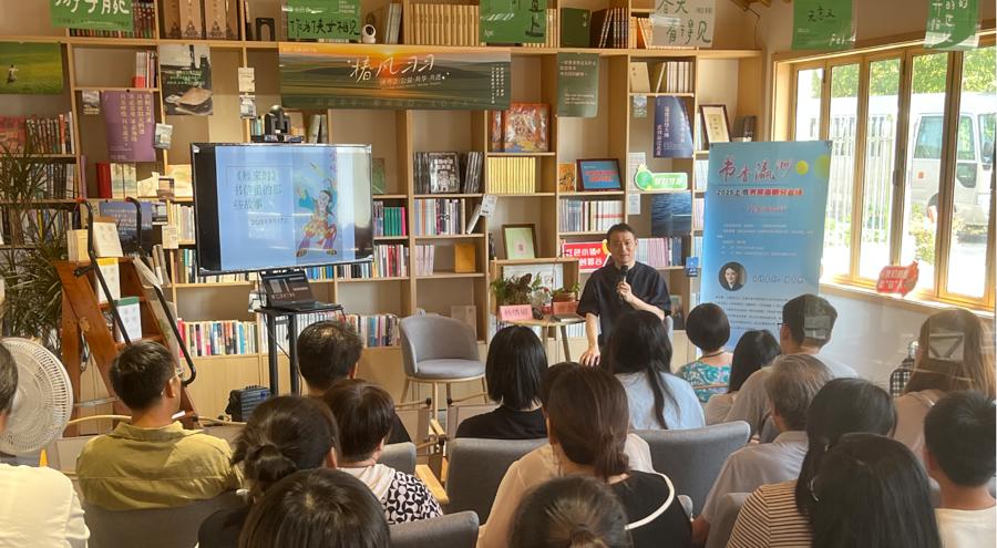 在古朴雅致的椿萱·壹琳慈善文化空间,作家唐吉慧以“《雁来时》——书信里的那些故事”为题,引领听众踏上穿越时光的温情之旅。回溯“鸿雁传书”的文化意象,他分享编著《俞振飞书信集》《陈伯吹书信集》等珍贵文献及散文集《雁来时》的体悟,讲述泛黄信笺间蕴藏的深厚人情、历史印记与家族往事。“讲座如同一把钥匙,为身处快节奏都市的人们打开了重拾笔墨温情、感悟慢生活之美的门扉。”当地诗歌爱好者米露边与嘉宾交流边做笔记。