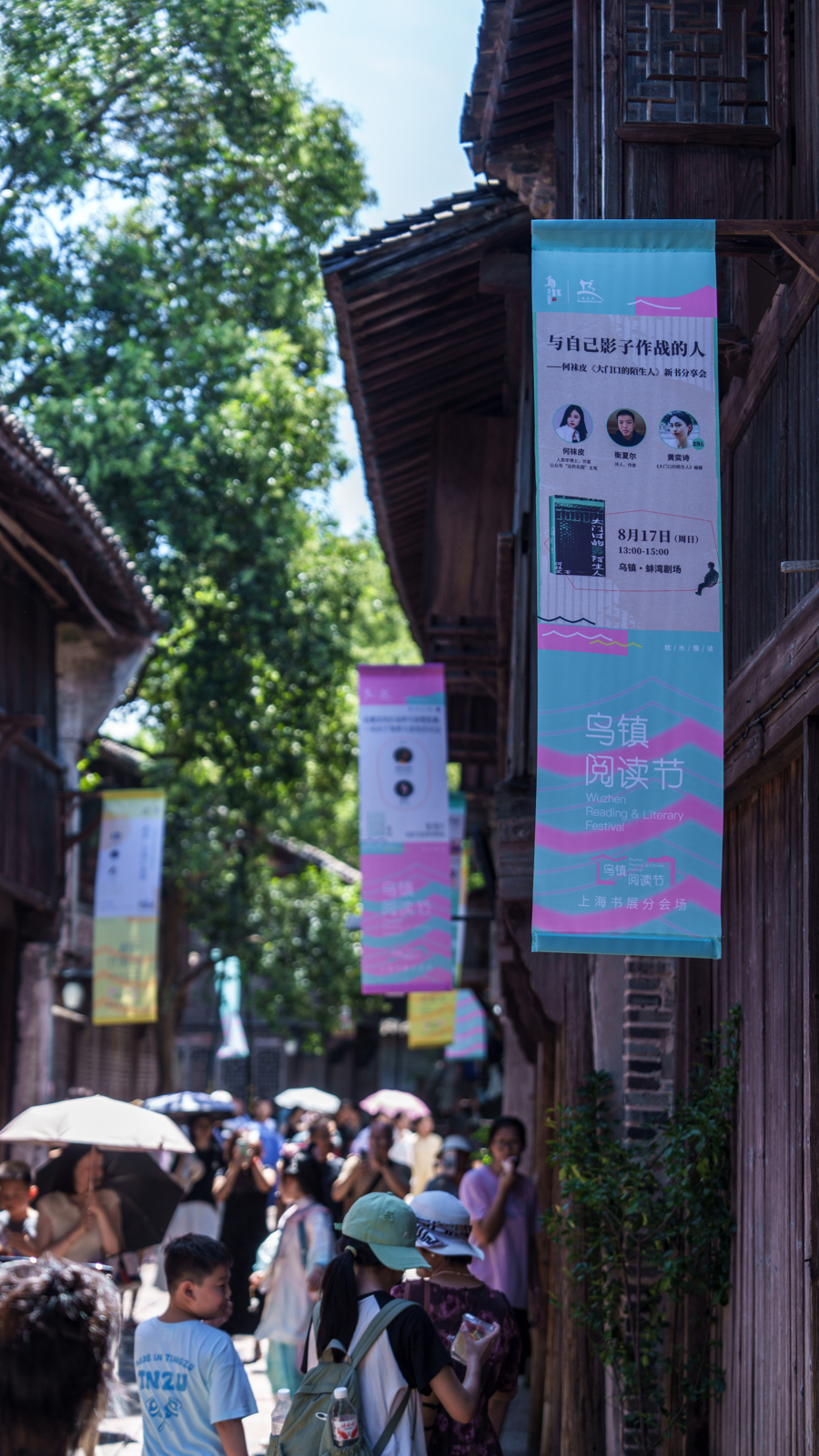 “在作家茅盾的故乡,没想到还能遇见上海书展!”暑期从上海赴乌镇旅游的王若冰父子,欣喜于在水乡邂逅熟悉的书展元素。作为2025上海书展分会场活动,以“大城小镇 悦心阅读”为主题的首届乌镇阅读节在西栅景区亮相,这也是上海书展首次落户浙江乌镇。
