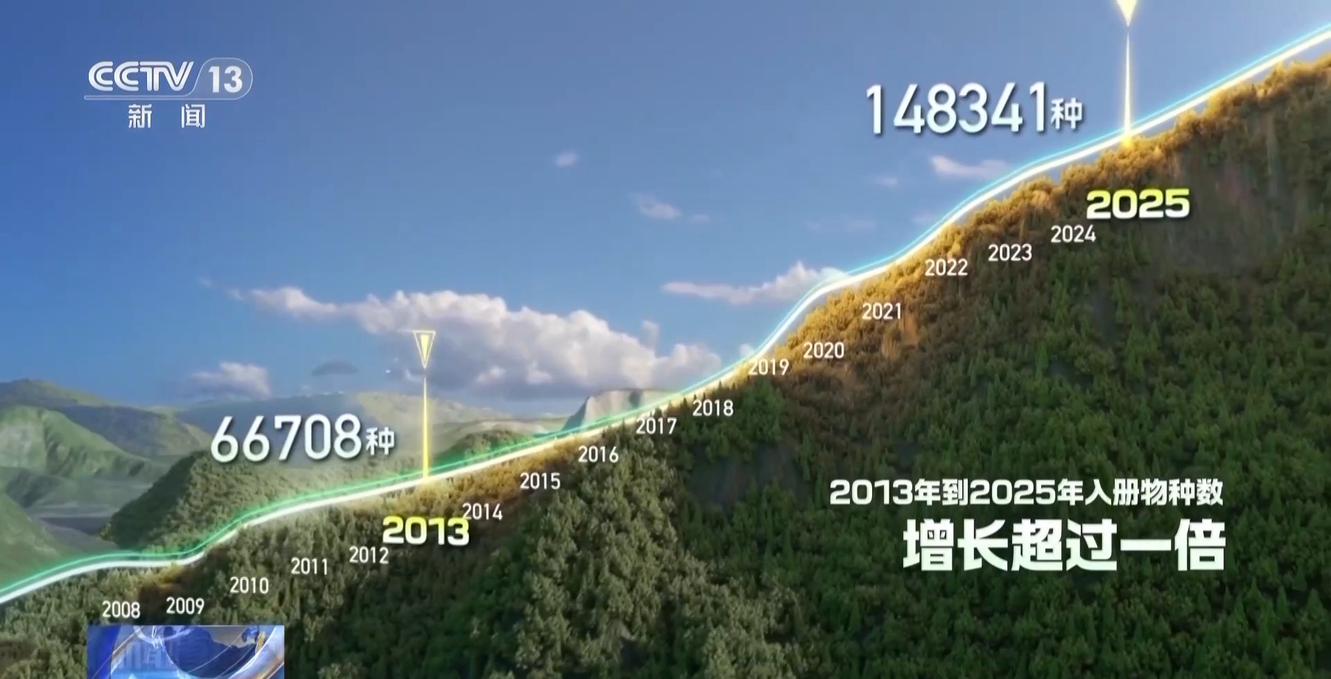 如今,《中国生物物种名录》上入册的生物种数,从2013年的6.7万种,增长到2025年的14.8万种,增长超过一倍,更多生命被写进中国的生态版图。