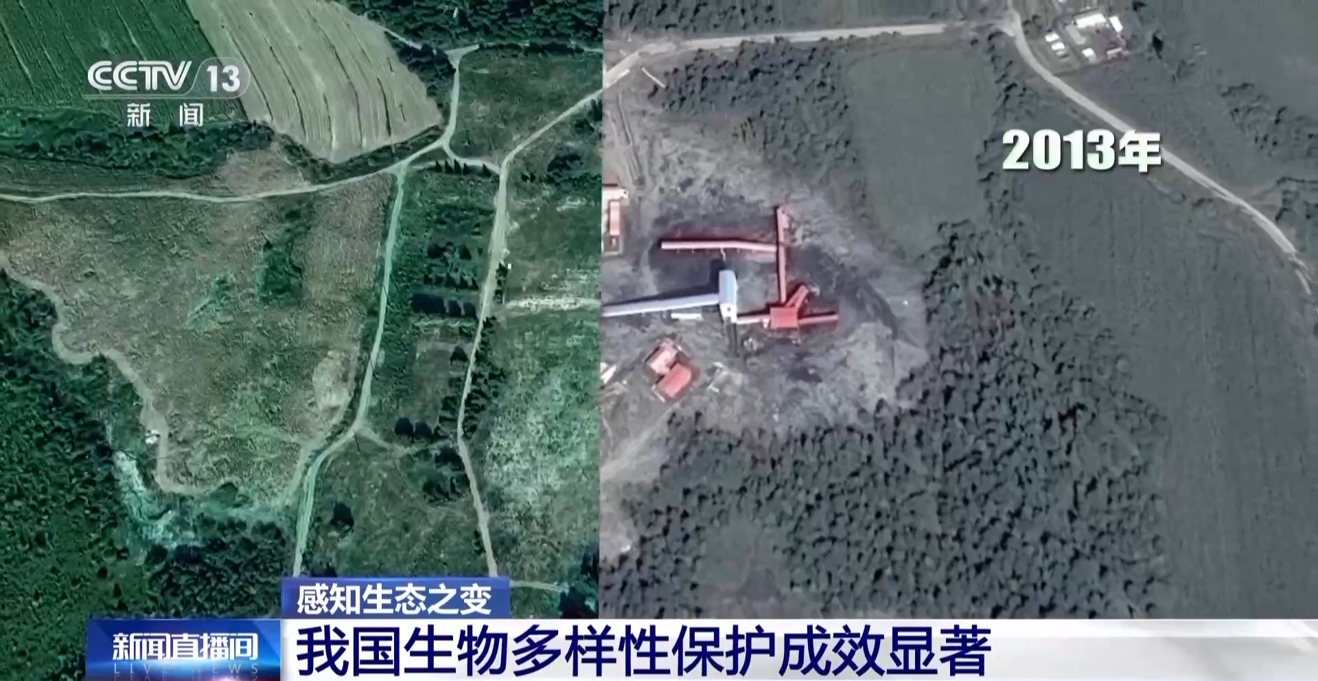 卫星感知到了变化。2013年,这片山林散布着采矿场,如今,绿色重新覆盖。156宗矿业权退出,生态廊道被修复。曾被人类活动打断的生态廊道,如今被野生动物的脚步重新贯通。