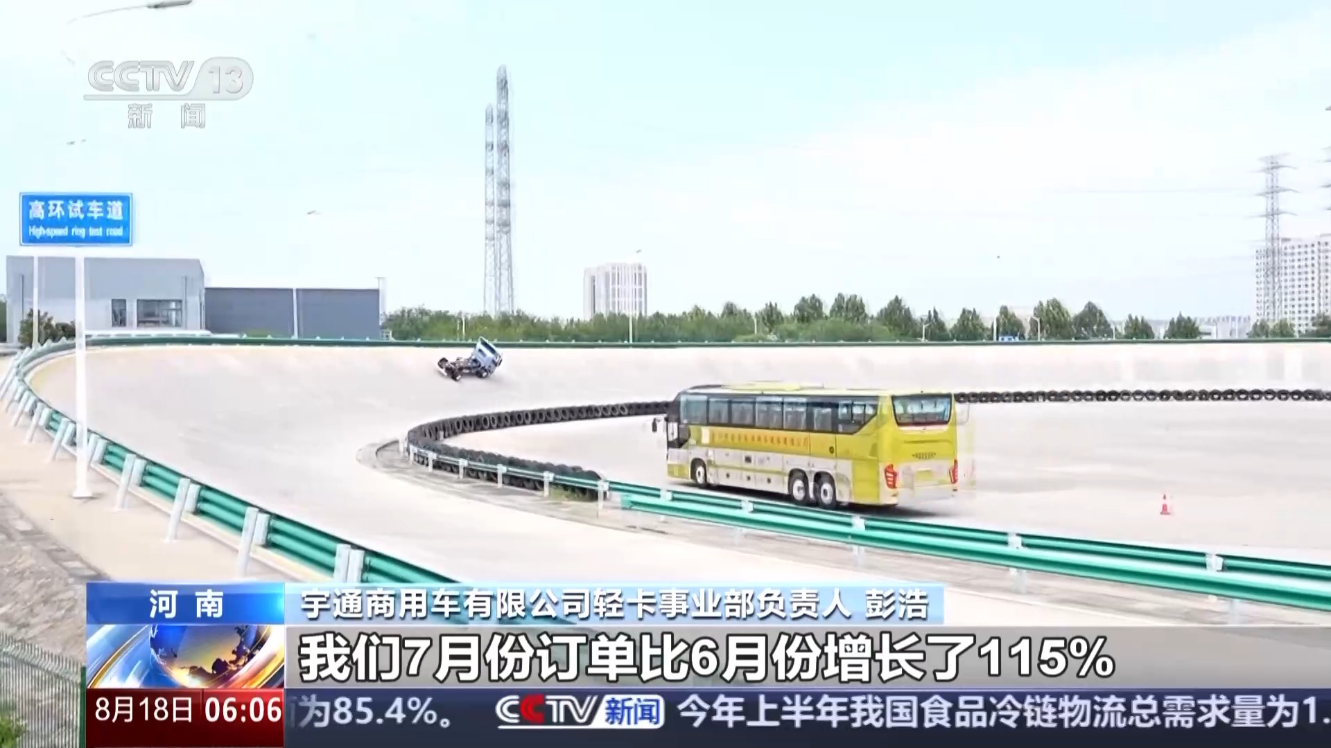 宇通商用车有限公司轻卡事业部负责人 彭浩:新能源冷藏车市场这一块,因为国家新能源汽车补贴的政策刺激,我们7月份订单比6月份增长了115%,同比翻了两倍,可以说是产销两旺。