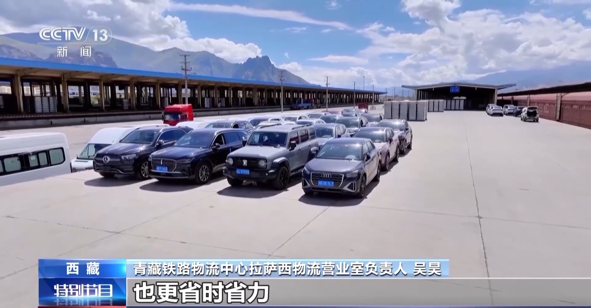 青藏铁路物流中心拉萨西物流营业室负责人 吴昊:像这种车型就是我们铁路为了小汽车运输的专门车型,装小汽车能达到一百三四十辆。有的朋友喜欢把车辆拖到拉萨以后,开车去周边玩,也更省时省力。