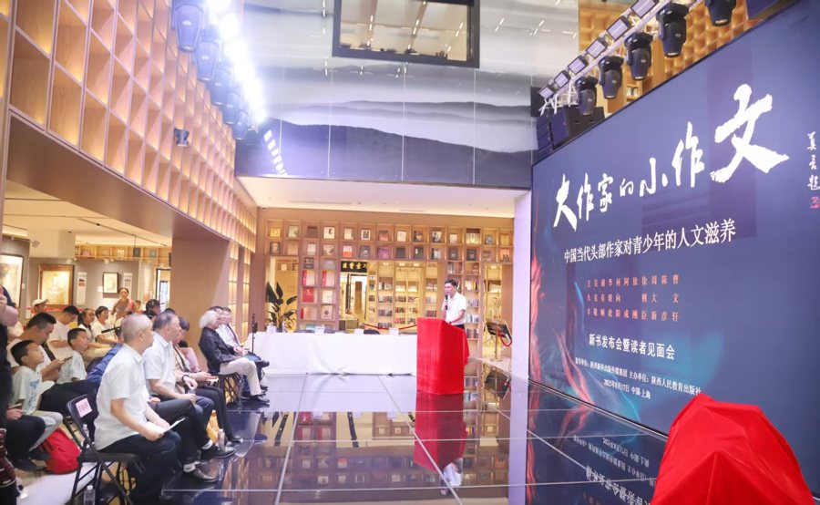 由陕西新华出版传媒集团指导、陕西人民教育出版社主办的“大作家的小作文——当代头部作家对青少年的人文滋养”新书发布暨读者见面会日前在上海书城举行。一套汇聚曹文轩、陈彦、周大新等11位文坛重量级作家为青少年读者量身创作的精粹文集《大作家的小作文》丛书面世。