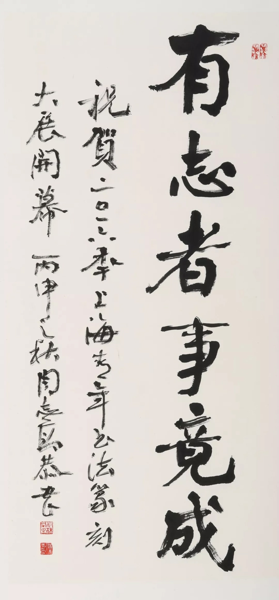 在书法创作上,周志高诸体兼擅,尤精行草,其书作笔墨酣畅、骨力刚健、气韵贯通。“他是后海派时期与韩天衡、周慧珺平辈的上海重要书家。他的行草书笔画刚劲有力,中锋、侧锋并用,结体宽博雄壮,受到大家的喜爱。”丁申阳说。