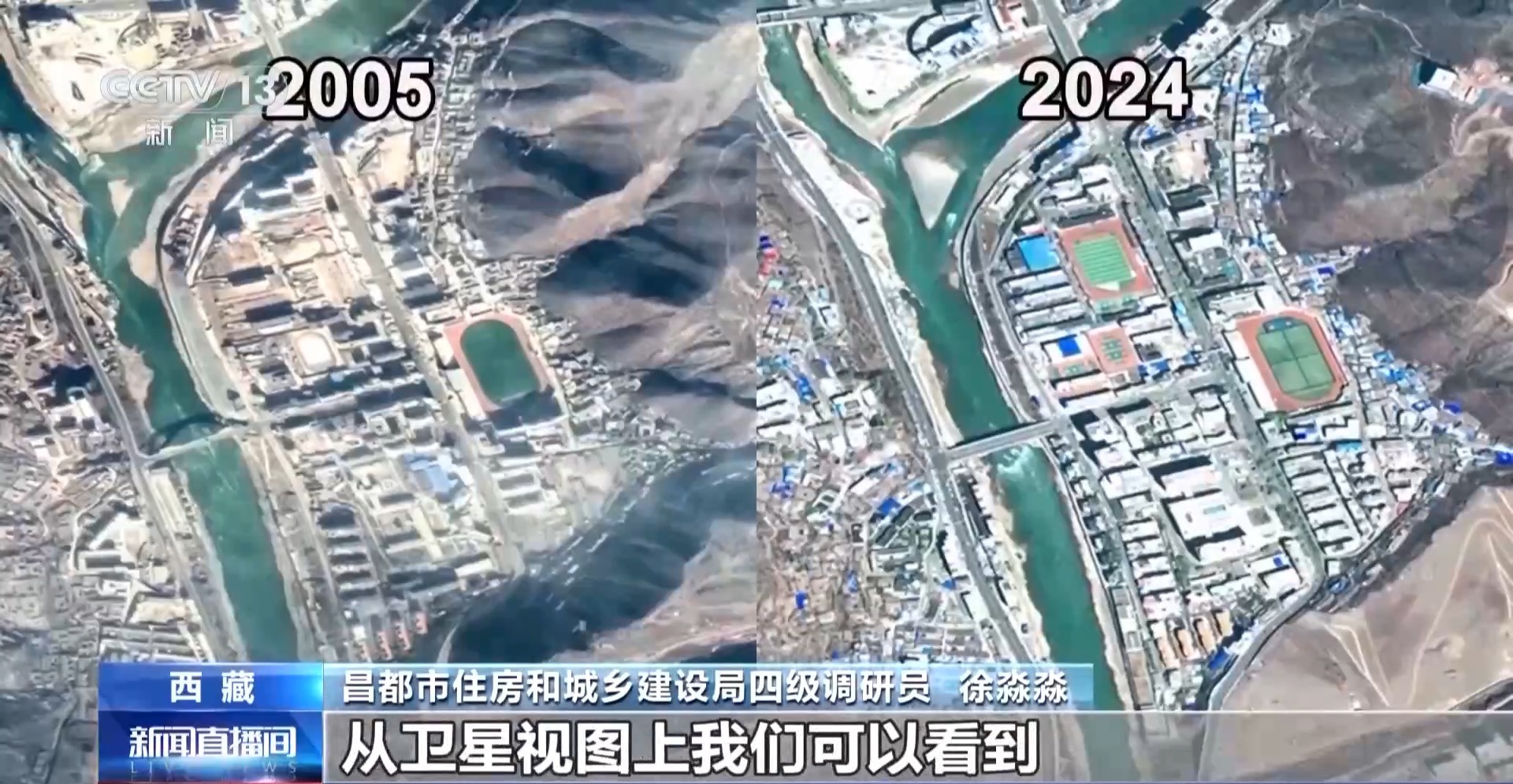 从卫星视图上可以看到昌都巨大的变化。