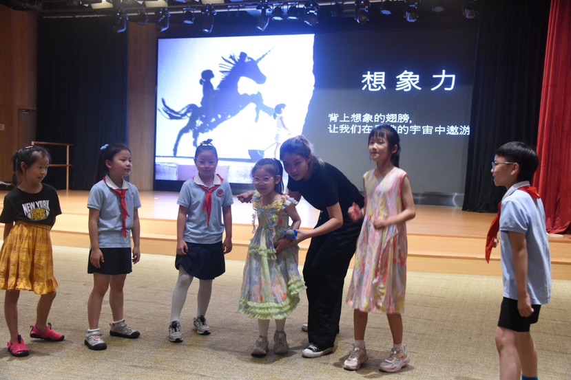舞台剧观演结束后,充满趣味的职工亲子戏剧工坊正式开启。聂晶老师以《戏剧可以为你带来什么?》为题,通过丰富的戏剧游戏与即兴表演互动,带领同学们近距离感受戏剧艺术的独特魅力,让大家在欢声笑语中提升表达能力、释放创造力。