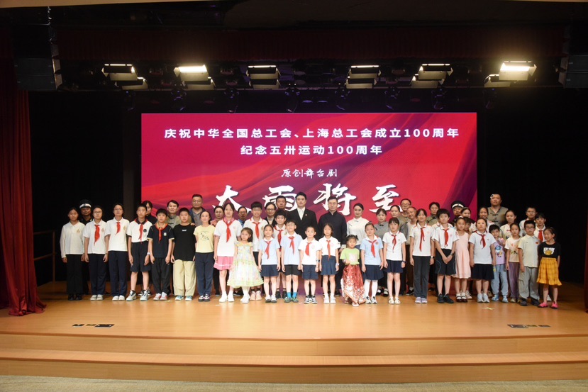 颁证仪式后,区总工会为同学和家长精心准备的文化活动接续上演。原创工运舞台剧《大雨将至》以生动的戏剧语言、饱满的情感演绎,讲述了波澜壮阔的上海第三次工人武装起义的工运故事。今年恰逢中华全国总工会成立100周年、上海总工会成立100周年、五卅运动100周年,剧中那些闪耀着理想与信念的情节、为工运事业奉献的英雄形象,让观众们深刻感悟到奋斗与担当的精神力量,进一步加深了对工运历史的理解与认同。