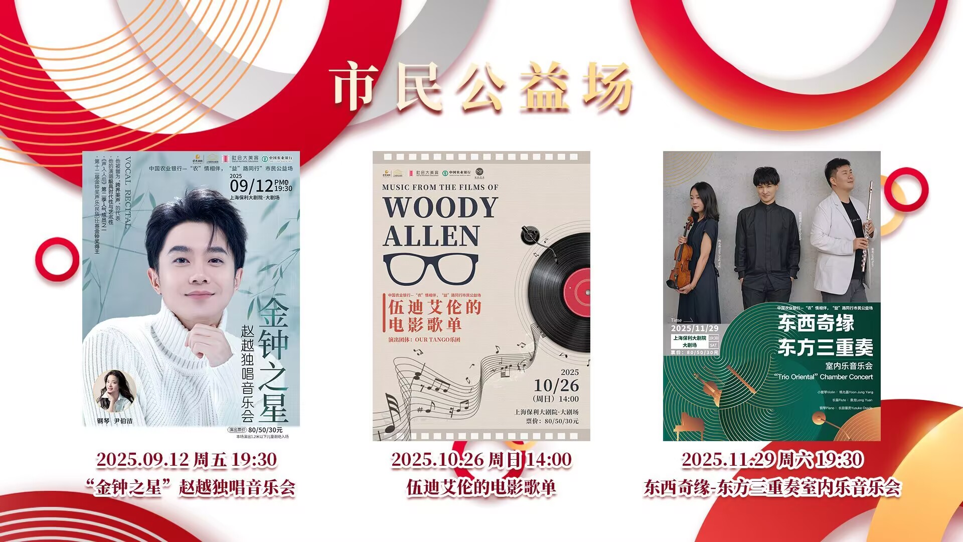 开办11年来,上海保利大剧院始终坚持艺术为民的理念。最低票价30元起,惠民演出“市民公益场”系列将继续提供高质量、低票价的室内乐演出,包括有9月12日《“金钟之星”赵越独唱音乐会》,10月26日《伍迪艾伦的电影歌单》,11月29日《东西奇缘-东方三重奏音乐会》等。“经典荟萃漫步音乐三百年”系列坚持将艺术教育融入日常,用买一杯咖啡的钱跟着音乐去旅行:9月21日《跟着民乐去旅行》,10月19日《“山林闲旷”——周不器古琴独奏音乐会》,11月16 日《19-20世纪的那些经典音乐》,12月21日《爱的礼赞—世界名曲音乐会》将陆续与观众见面。