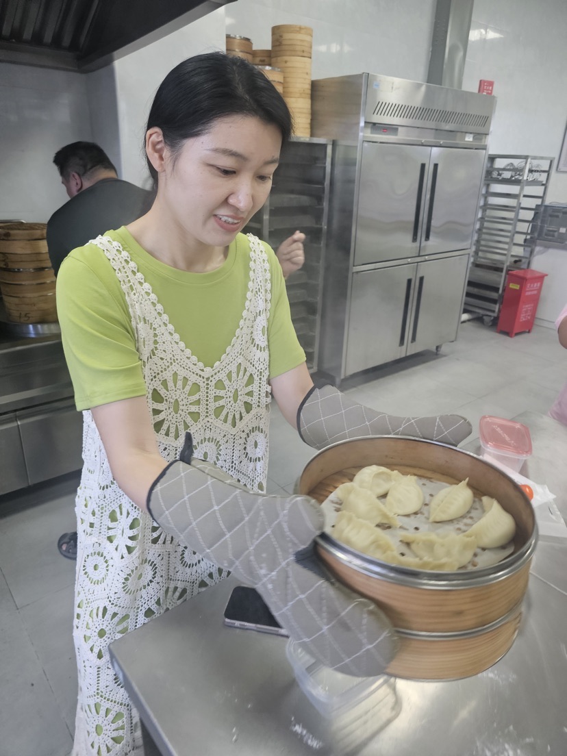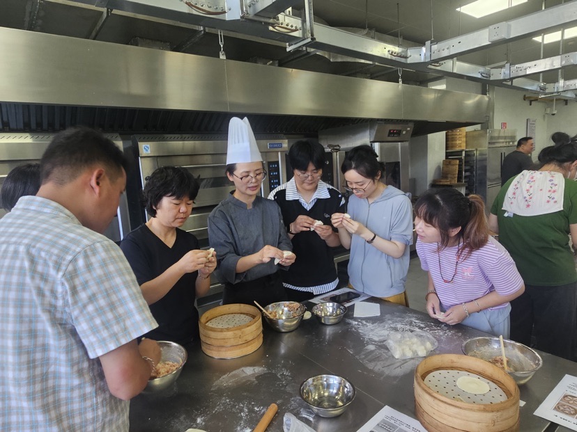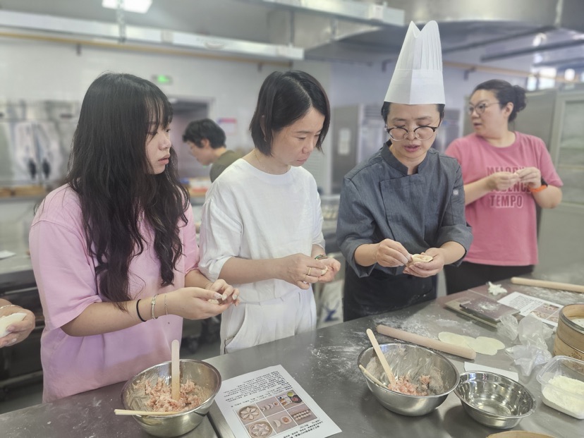 曹琴的授课风格生动有趣,妙语连珠,使课堂气氛全程都非常活跃。课堂上,她巧妙融合传统技法与现代创意,现场演示包饺子的“指尖魔术”,从面团揉捏力度到馅料调味配比,从蒸笼火候把控到花酥造型塑形,每个环节精准拆解,让学员在“一看就懂、一学就会”的互动中感悟到工匠精神的精髓。