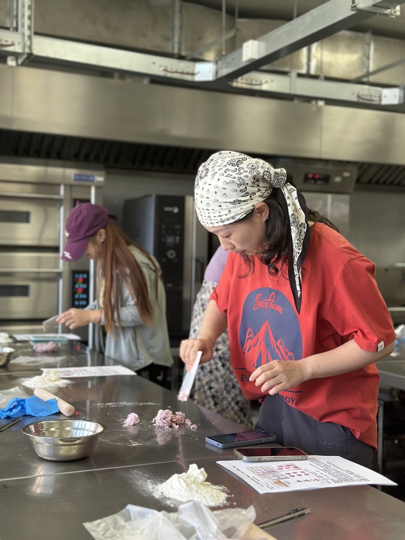 27日课程聚焦经典鲜肉蒸饺制作。会员们在曹琴老师的指导下,系统学习冷水和面技法、肉馅调配、擀面皮、褶皱捏合手法等核心技能。随着蒸笼热气升腾,一笼笼形如月牙、皮薄馅大的蒸饺集体亮相,鲜香弥漫整个教室,所有人都成功解锁了传统点心新技能。28日课程进阶至花酥制作。学员通过油酥面团分层、染色、塑形等具体步骤的实操学习,将普通面团转化为精美的花式糕点。