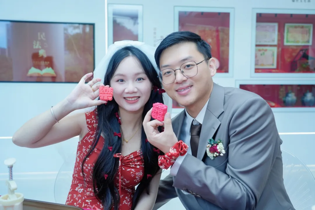 “特别激动!没想到今天来领证,能收获这么多惊喜。”前来登记领证的王女士笑着说,“相信大家都愿意在结婚登记的这天,留下一段特殊的、难忘的回忆,而我们很幸运。我几乎每个环节都参与了!”