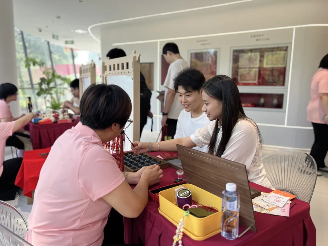 在“七夕巧工坊”区域,新人们用红绳、沙金吊坠等材料DIY红绳挂件,作为“结发夫妻”的信物互赠对方。另一侧,新人们正用轻粘土制作传统巧果摆件,寓意双方“巧结连理枝”。在体验过程中,大家时而说说笑笑,时而眼波传情,欢声笑语,甜蜜“爆表”。“这些活动让我们感受到了中国传统文化的魅力,也让我们更加珍惜这份来之不易的缘分。”一位正在制作巧果的新人笑着说道。