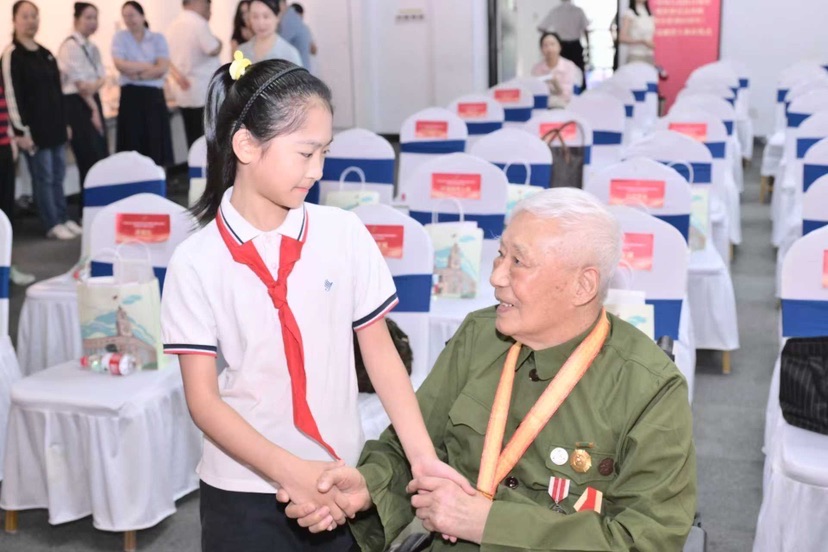 活动现场还举行了庄重的纪念邮票揭幕仪式和邮品赠送仪式。上海市邮政管理局党组书记、局长冯力虎,中国邮政集团有限公司上海市分公司党委书记、总经理李柏平,上海市文化和旅游局党组成员、副局长,市文物局副局长向义海,静安区委常委、统战部部长顾定鋆等为《中国人民抗日战争暨世界反法-西斯战争胜利80周年》纪念邮票揭幕。该套纪念邮票以反映14年抗战历程为主线,以重要战役战斗为展示重点,以抗战题材雕塑为主要表现形式,具有艺术感染力、历史表现力、视觉冲击力,凸显了中国共产党的中流砥柱作用和中国抗战的东方主战场地位,同时,领导还向抗战老战士及家属、学生代表赠送了首日封和纪念邮品,以此表达对抗战老战士的敬意和对年轻一代的殷切期望。