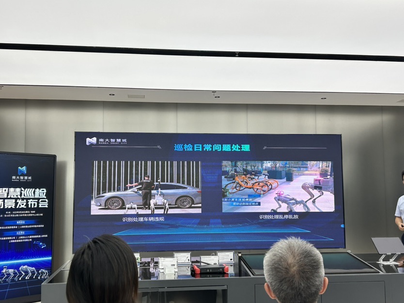 9 月 28 日上午,南大智慧城正式发布智慧巡检应用场景。记者在现场看到,一只机器狗在南大智慧城的街头巷尾开启巡检工作,它灵活地穿梭在各个角落,精准识别违规停车、共享单车乱停放等问题,这一幕标志着南大智慧城“空地一体”智慧巡检新场景正式落地。