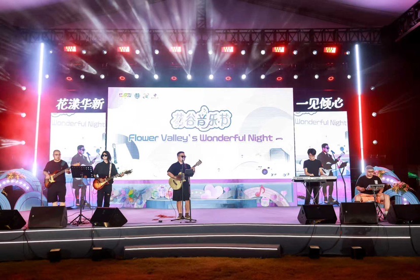 随着虹桥花谷村民表演的开场舞《繁花》轻盈起舞,活动正式拉开帷幕。开幕式后,首届FlowerValley'sWonderfulNight花谷音乐节接棒登场,民谣的治愈、国风的雅致、流行的热烈在花海间交织,多支乐队轮番献艺,秋夜的花谷被音乐与欢笑填满,艺术气息与自然之美在此完美融合。