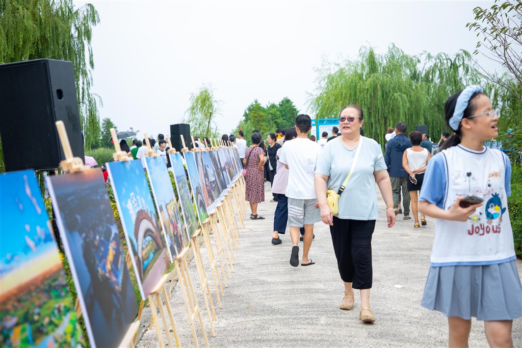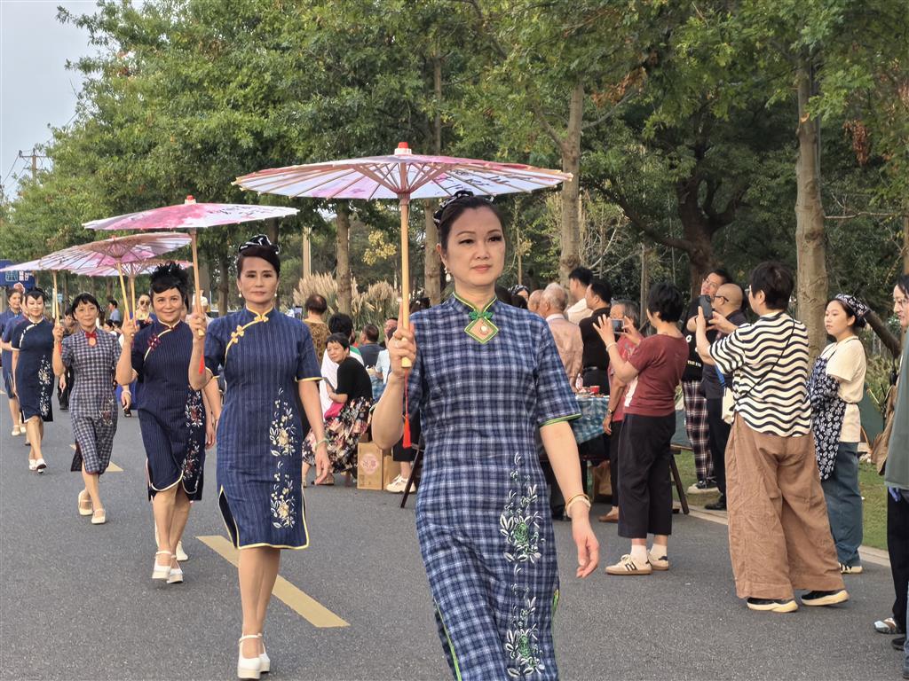 “湿地走秀”分为“水乡源起·自然馈赠”“文脉赓续·墨药承薪”“金穗丰年·喜庆盈门”三大篇章,参与者既有漕泾镇村居民,也有游客、志愿者,更有中小学及幼儿园师生、书法爱好者、盐民代表等,不同身份的参与者共同登上T台。“能在家门口的湿地T台上走秀,既展示了我们女性的风采和漕泾的文化,又特别热闹,太有意义了!”参与走秀的村民叶女士笑着说道。