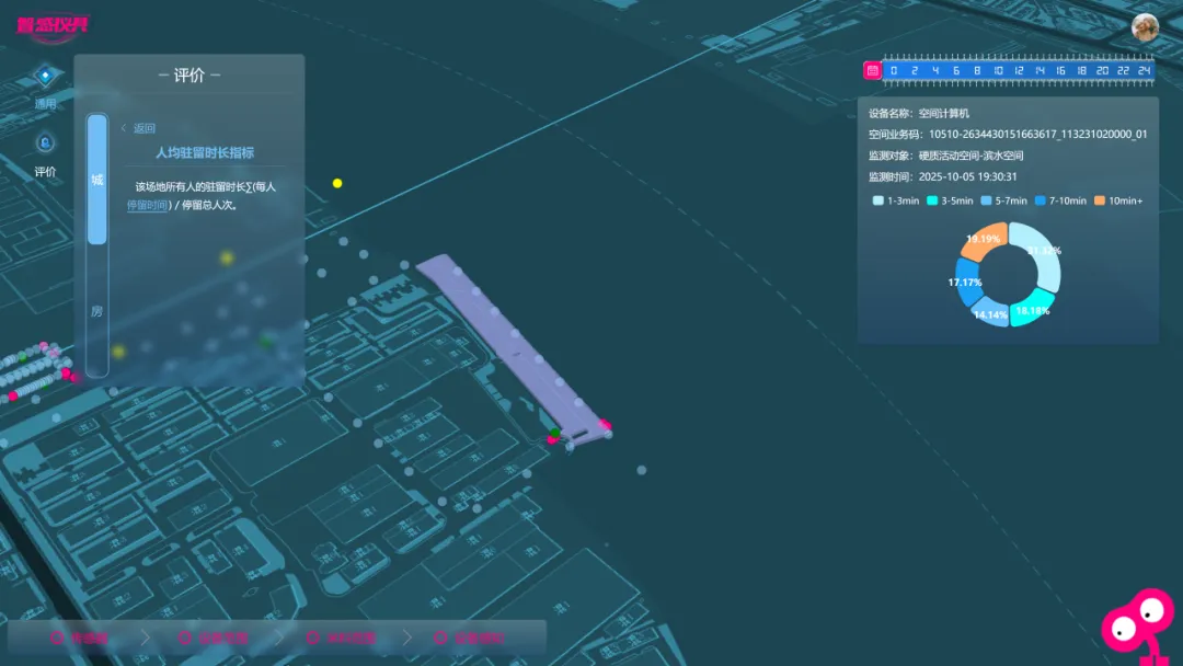 本次主展区的20公顷范围内部署了500个智能感知终端、空间计算机及边缘智算设备,形成主展区的立体全息感知系统,为核心展馆A馆(复兴云厅)、船台公园、滨江步道等室内外区域装上“感知触角”,实时刻画了主展区内人、物、事的状态。