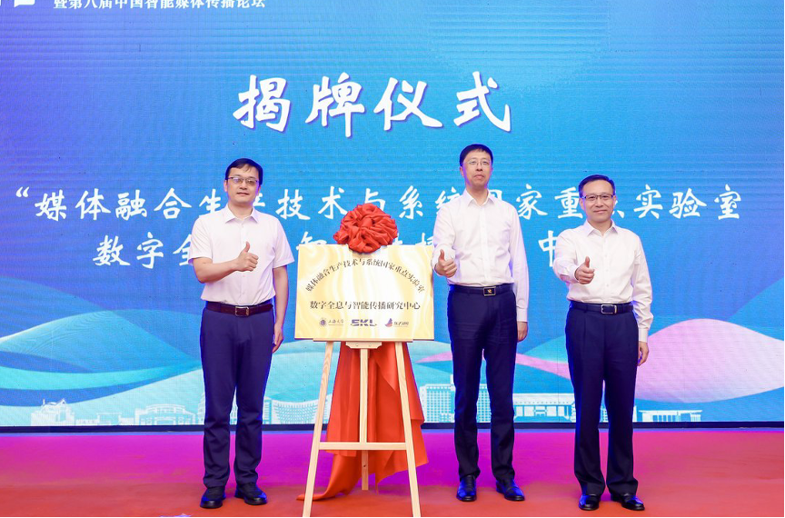 在第八届中国智能媒体传播论坛上,“媒体融合生产技术与系统国家重点实验室数字全息与智能传播研究中心”正式揭牌。该中心由新华社国家重点实验室、上海大学新闻传播学院与上海报业集团联合建设,旨在以数字全息与智能传播的交叉研究为核心,探索科技驱动下的传播创新路径。