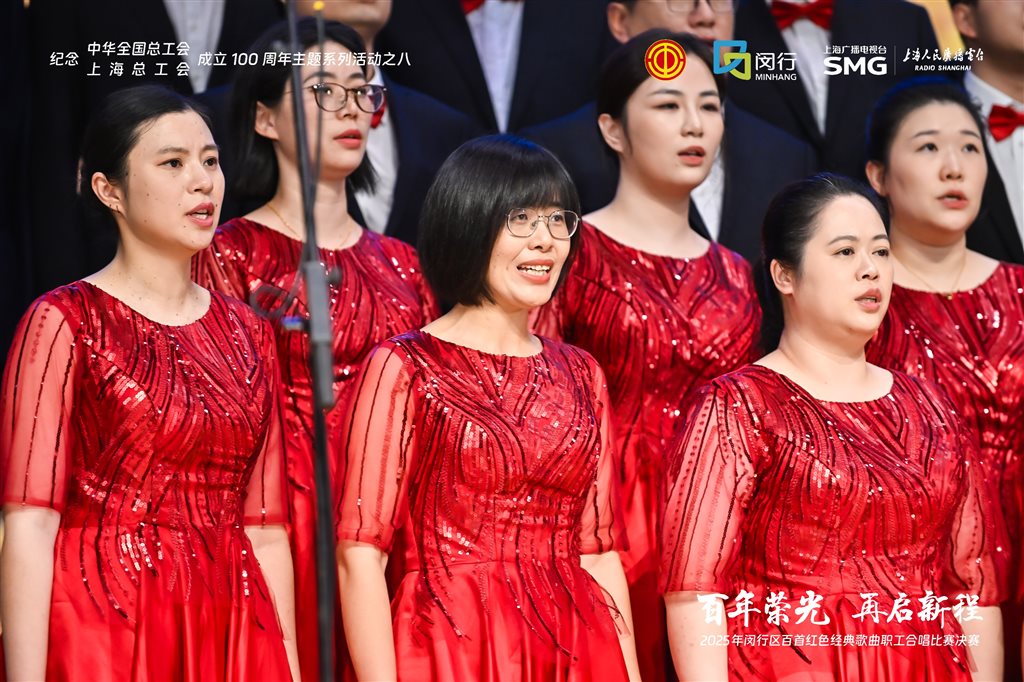 10月16日,“百年荣光 再启新程”2025年闵行区百首红色经典歌曲职工合唱比赛决赛,在莘庄工业区文化体育活动中心落幕。