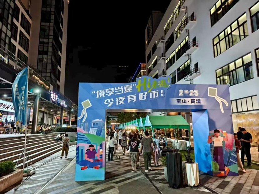 与此同时,高境镇深谙“体育IP+烟火经济”的融合之道,在今年夏天,夜市市集就已经成为拉动夜间消费的引擎。足球场内的激烈角逐与场外夜市的袅袅烟火,共同构成了高境镇独特的夜景。居民们在观赛之余,穿梭于特色小吃、非遗文创等摊位之间,带动了消费增长。