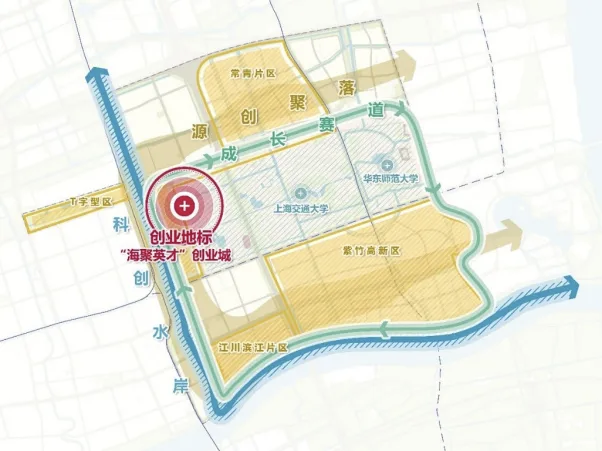 “海创城”位于沧源路1300号,处于“大零号湾”科技创新策源功能区T字型区核心位置。“海创城”以“聚、创、链、融”为路径,聚焦生物医药、人工智能、高端装备三大产业,对应策源期、种子期、初创期,打造服务企业全生命周期的创新生态系统,推动科技成果“从0到1到N”的转化,着力招引学术精英、科研专家、企业家领袖等创新创业人才,形成人才热带雨林,共同努力成就世界级创新创业生态城。