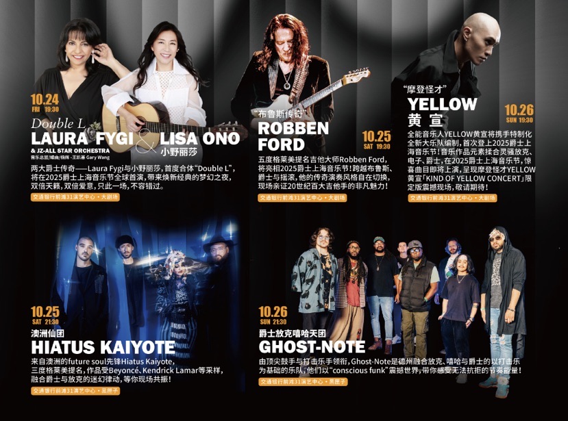 同期登场的还有多位重量级音乐人:“摩登怪才”YELLOW黄宣将携特制大乐队,呈现「YELLOW黄宣: KIND OF YELLOW CONCERT」限定专场;澳大利亚仙团Hiatus Kaiyote将带来中国内地首秀,用future-soul的迷幻氛围征服舞台;布鲁斯传奇吉他大师Robben Ford将演绎风格交汇的即兴火花;格莱美级鼓手领衔的德州爵士放克嘻哈天团Ghost-Note,则将用强劲律动点燃现场气氛。