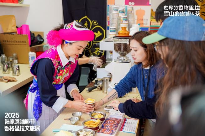 10月22日-26日,2025陆家嘴咖啡节期间,由中共香格里拉市委、香格里拉市人民政府主办,香格里拉市文化和旅游局承办,陆家嘴咖啡产业中心、本地非遗工坊等联合筹备的“世界的香格里拉·雪山的咖啡&茶”文旅创意展,在上海市陆家嘴中心绿地开启。以“咖啡+文旅”为纽带,这场展览将滇西北高原风情融入都市,为观众带来沉浸式体验。
