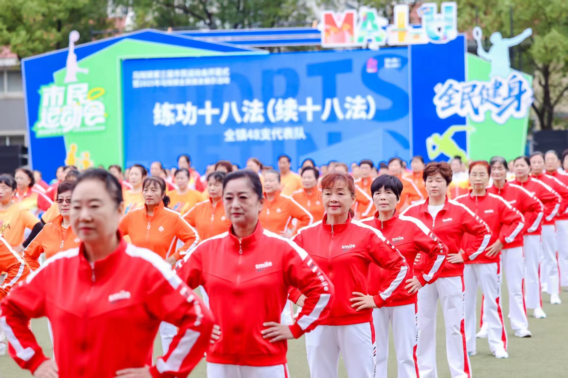 展演环节上,全镇48支代表队展示了练功十八法(续十八法),动作整齐、气势恢宏,展现了马陆市民“一马当先走在前列”的精气神;健身操《中华民族一家亲》《山笑水笑人欢笑》,旋律轻快、舞步轻盈,传递出民族团结的深情和对美好生活的向往。压轴登场的优秀团队展演更是精彩不断。“老男孩”带来的《英雄赞歌》舞出了深沉的家国情怀;青少年街舞《超燃节拍》彰显青春朝气;在2025年上海城市业余联赛“泰康杯”上海市老年人体育联赛“黄埔·我来赛”第十五届“南东杯”浦江彩巾操比赛中荣获一等奖的“马踏飞燕”健身队,以操舞《奔跑吧中国》展现了对祖国的热爱与对健康生活的追求。