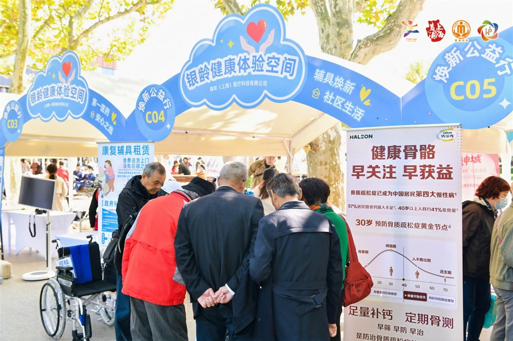 10月28日至30日,“黄浦好市 颐养悦集”在复兴公园马恩雕像广场举办,设置了“五边颐养在黄浦”“蓝马甲乐龄健康嘉年华”“辅具焕新社区公益行”三大场景,吸引了104个摊位、109家单位(含24个区老龄委委员单位、85家社会企业)参展。舞台区同样热闹非凡,10月29日-30日两天下午,叔叔阿姨们的才艺快闪秀将闪亮登场,歌声、舞步与乐声次第绽放,这场快闪,闪的是才艺,更是他们永不褪色的青春活力。
