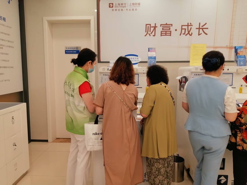 与上海银行莘庄支行共建的“导银志愿”服务岗,是他们践行初心的一个温暖场景。每逢养老金发放高峰,志愿者们便穿梭于大厅之中:指导使用智能柜员机、协助归国老人办理业务、搀扶行动不便的客户……他们手中的志愿服务记录本,不仅记载服务人数,更写满了温暖与感悟。