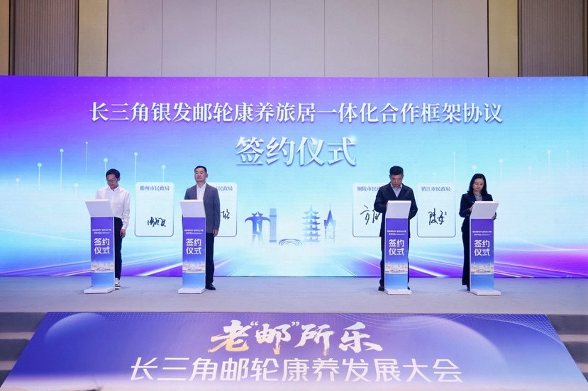 与此同时,宝山区与江苏镇江、浙江衢州、安徽铜陵三地民政部门共同签订《长三角邮轮康养旅游一体化合作框架协议》,并为首批长三角银发邮轮康养体验点授牌。以邮轮康养的“点”拓展为老服务的“面”,长三角养老资源将全面实现联动共享,区域养老旅游资源整合、服务标准互认与发展协同都开始实质推进,为长三角银发群体“旅居+康养”的多元化需求提供了发展平台。会上,中国农业银行首发“银发旅游金融服务包”,锦江旅游推出“银发旅游增值服务包”,为长三角银发经济融合发展提供支撑。