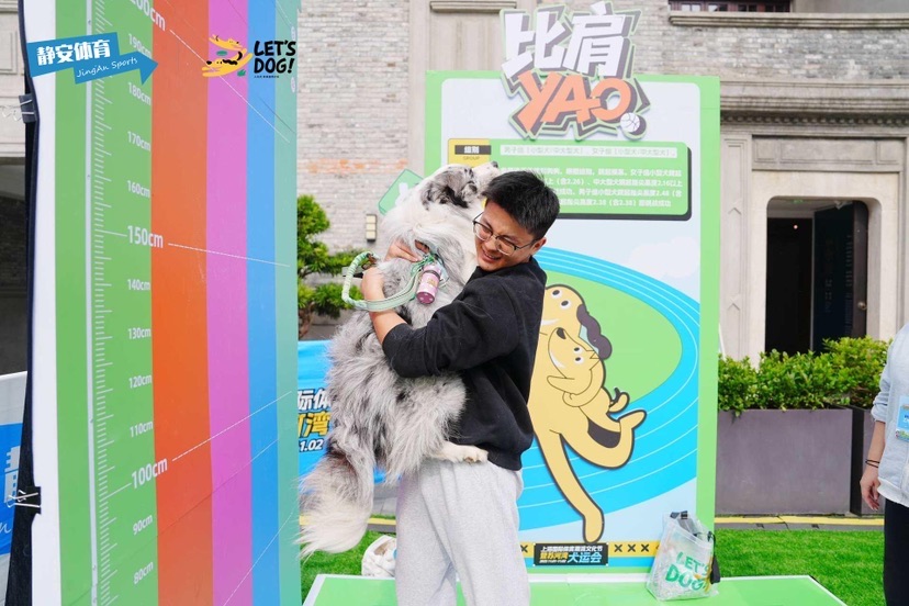 开幕式后,领导嘉宾前往竞赛场地参与趣味互动,近距离感受人犬协作的快乐。其中“比肩YAO”抱狗摸高、“打破12.88”携宠跨栏、“乒乒乓乓”球类互动等趣味环节,分别致敬了上海体育的高度、速度和技术等。