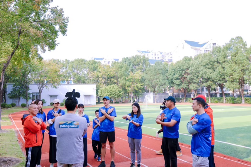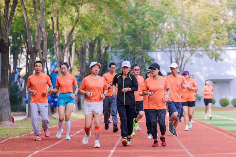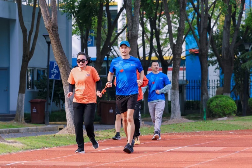 进入实践环节,技巧在双向适应中逐步落地。面对经验丰富的视障跑者,志愿者们在略显生涩的口令中不断调整,学习如何更简洁、预判性地传递信息;陪伴听障跑者时,他们通过手势、眼神与轻触反复尝试,逐步建立起无需言语的节奏默契。整场训练中,变化更多发生在志愿者一方,许多初次参与的员工从开始的紧张拘谨,在跑者专业态度的感染下,逐渐放松并找到陪伴的状态。一位志愿者感慨:“公益不止于资金支持,而是真正躬身入局。曾经以为残健融合是我们去帮助他们,今天才发现,是他们在带领我们认识一个更真实的世界。”