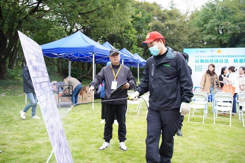 为切实做好第八届中国国际进口博览会等重大活动服务保障工作,有效防范登革热、基孔肯雅热等蚊媒传染病的发生与传播,提升徐汇区各街镇(区级)应急队伍的病媒生物应急处置技术水平和协同能力,10月31日,徐汇区2025年病媒生物应急处置技能比武活动在上海植物园举行。