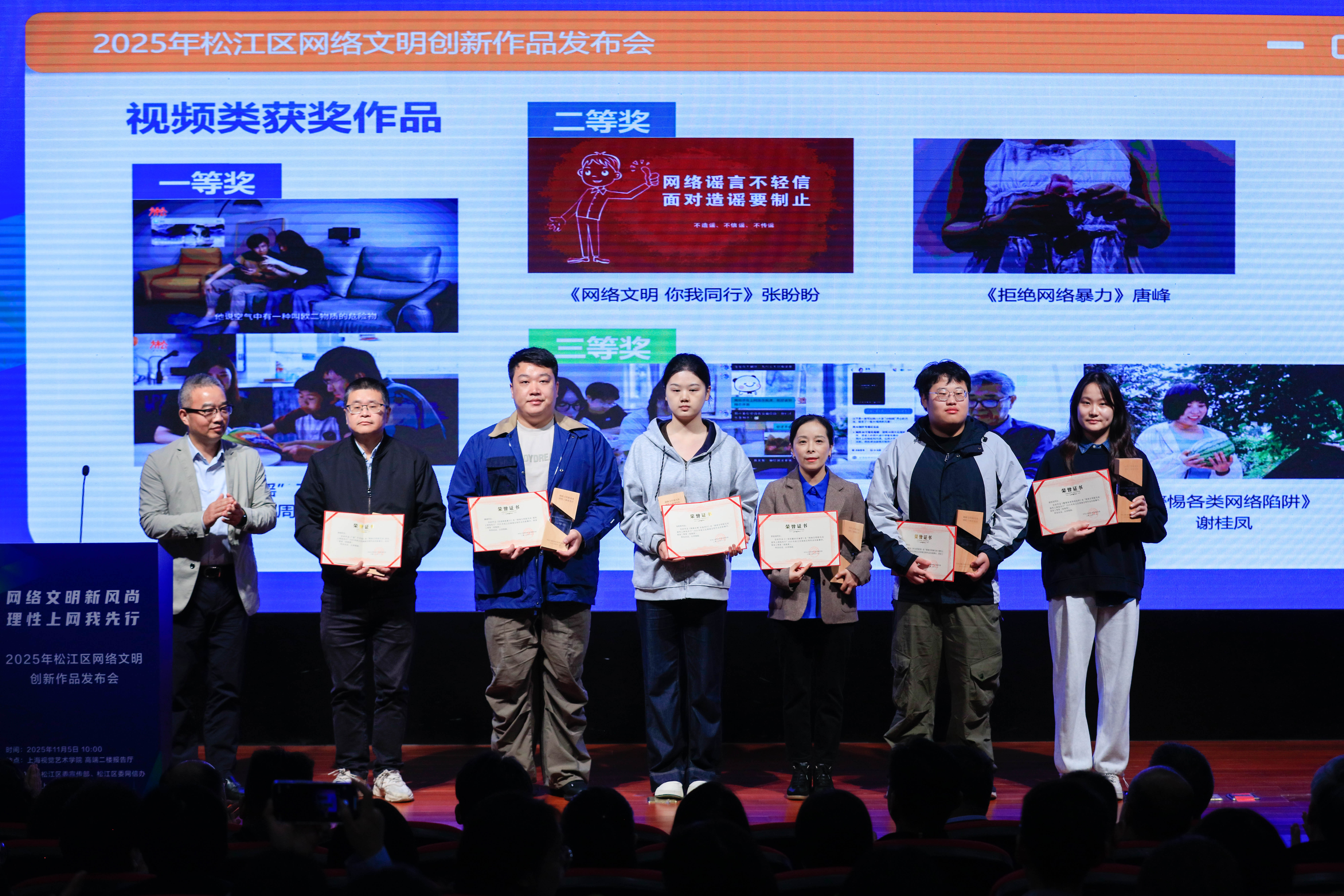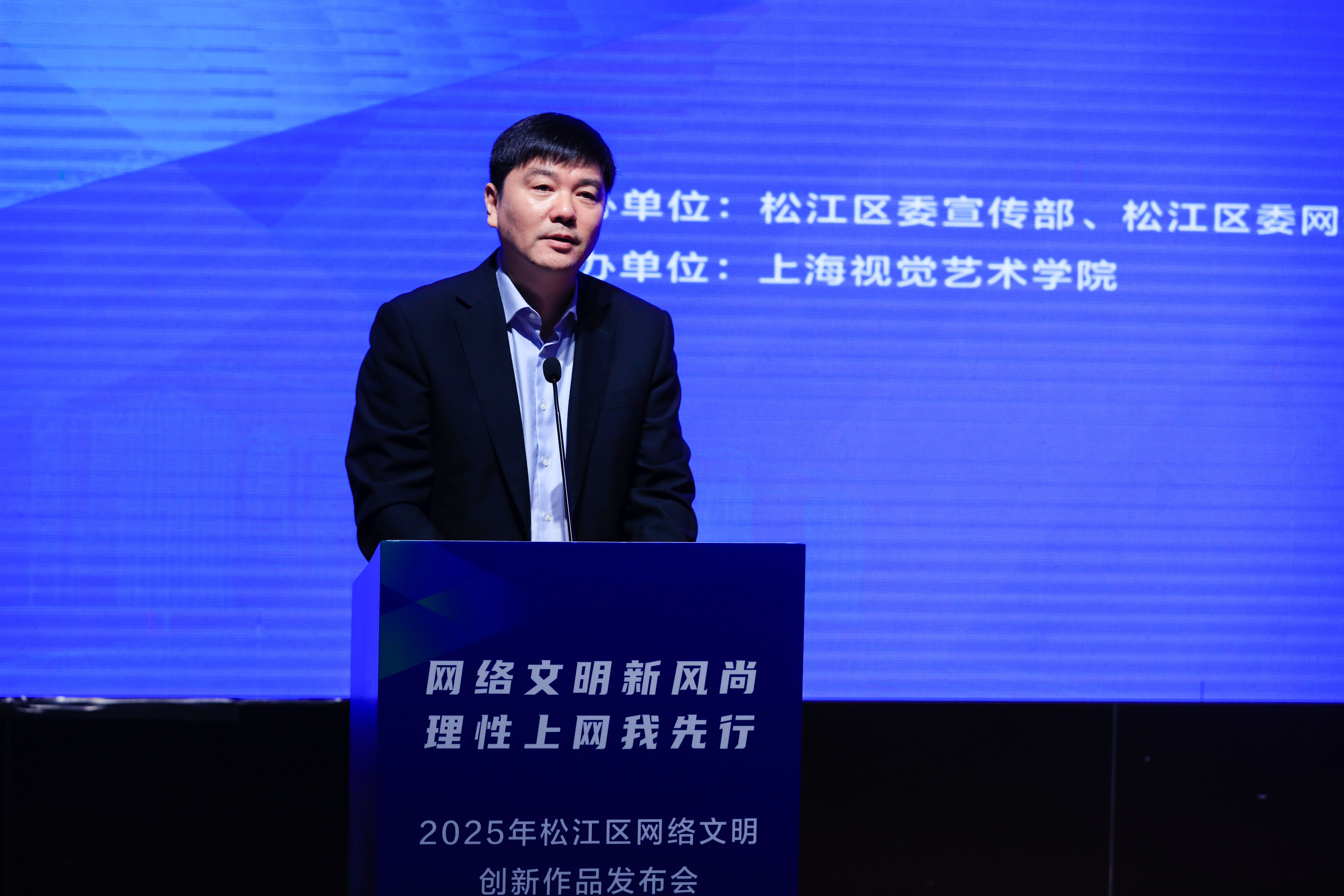 11月5日,由松江区委宣传部、区委网信办主办,上海视觉艺术学院承办的2025年松江区网络文明创新作品发布会在上海视觉艺术学院成功举办。大赛以“网络文明新风尚,理性上网我先行”为主题,围绕提高网络法律意识、倡导网络文明风尚等方面开展作品的创作和评选,旨在通过艺术创作的形式,引导广大网民树立正确的网络价值观,共同营造清朗、健康、和谐的网络环境。
