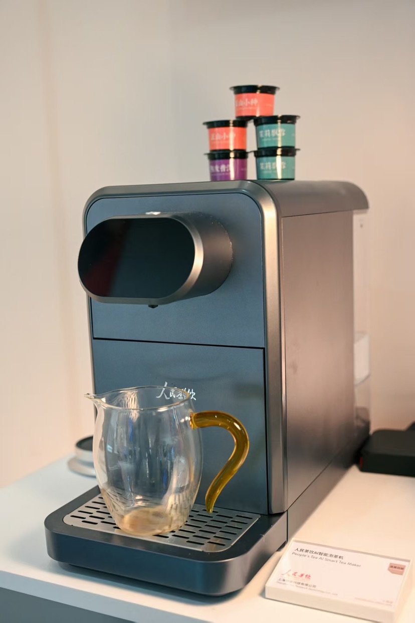此次一同亮相的人民茶饮AI智能泡茶机,目标是“让中国茶简单好喝”。这款泡茶机搭载了智能工夫茶冲泡操作系统,内置的“识茶智慧眼睛”与MCU计算模块能精准识别不同品类的茶胶囊,实现“碰一下就知道要泡什么茶”的便捷操作,仅需3秒就能完成出汤,既保留了工夫茶的醇厚口感,又大大简化了冲泡流程。同时,机器搭载的多媒体屏支持定制图片、视频、音乐等内容,语音控制功能精准高效,让传统茶饮体验更贴合现代生活习惯。