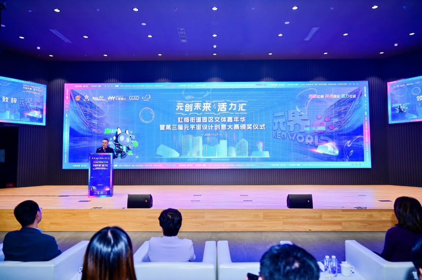 11月7日,“元创未来・活力汇”虹梅街道园区文体嘉年华暨第三届元宇宙设计创意大赛颁奖仪式热闹举办。本次活动以元宇宙设计创意大赛颁奖为主线,整合园区体育赛事颁奖、文体表演与多元互动体验,打造了一场集科技感、文化味与互动性于一体的年度盛会。