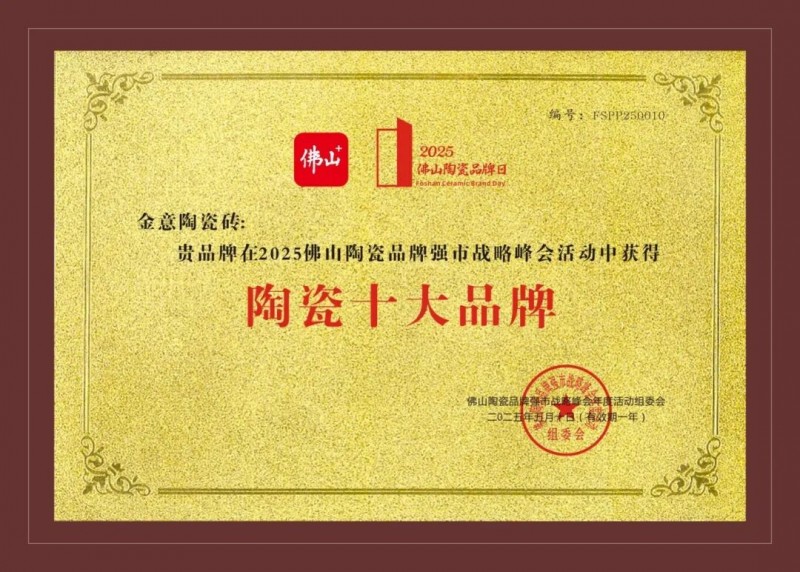 由佛山市委网络安全和信息化委员会办公室、佛山市市场监督管理局指导、佛山陶瓷品牌强市战略峰会年度活动组委会主办的“品牌破圈 聚力突围——2025佛山陶瓷品牌强市战略峰会”在佛山禅城举行。会上,2025年度佛山陶瓷行业品牌推介榜单正式揭晓。金意陶凭借卓越的创新能力、对品质服务的坚守和强大的品牌影响力,揽获“佛山陶瓷头部品牌、陶瓷十大品牌”等重磅大奖;由中国陶瓷网主办的“超级品牌,中国主场”首届泛家居行业品牌节,在佛山举行。2025建筑卫生陶瓷十大品牌榜单正式揭晓,金意陶凭借硬核的品牌实力、优异的产品品质和良好的市场口碑一举揽获“瓷砖十大品牌”重磅殊荣!金意陶此次荣获“瓷砖十大品牌”,是业内权威以及消费者对金意陶的高度认可,更是金意陶品牌实力与影响力的权威认证。
