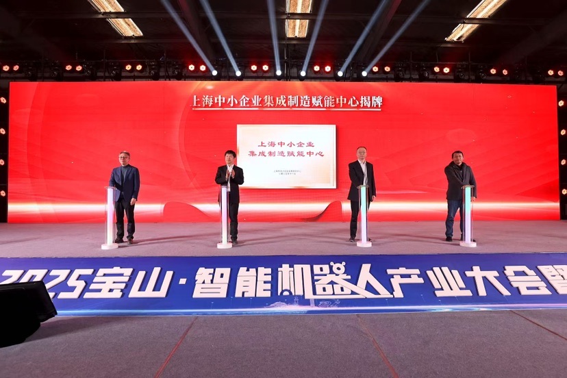 上海市中小企业服务中心主任贾勉、宝山区经委党组书记王琳、上海大学机自学院党委书记陈方泉以及上海星合机电有限公司为上海中小企业集成制造赋能中心揭牌,精准服务中小企业创新需求。