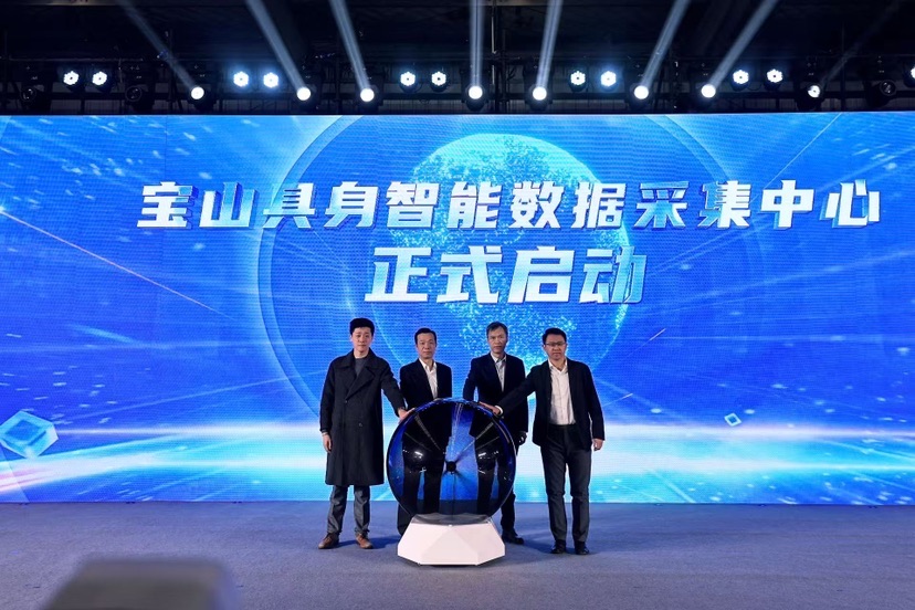 顾村镇党委书记杨文杰与上海库帕思科技有限公司、宇树上海高羿科技有限公司、深圳市众擎机器人科技有限公司等企业嘉宾共同启动宝山具身智能数据采集中心,为智能机器人发展提供数据要素支撑。